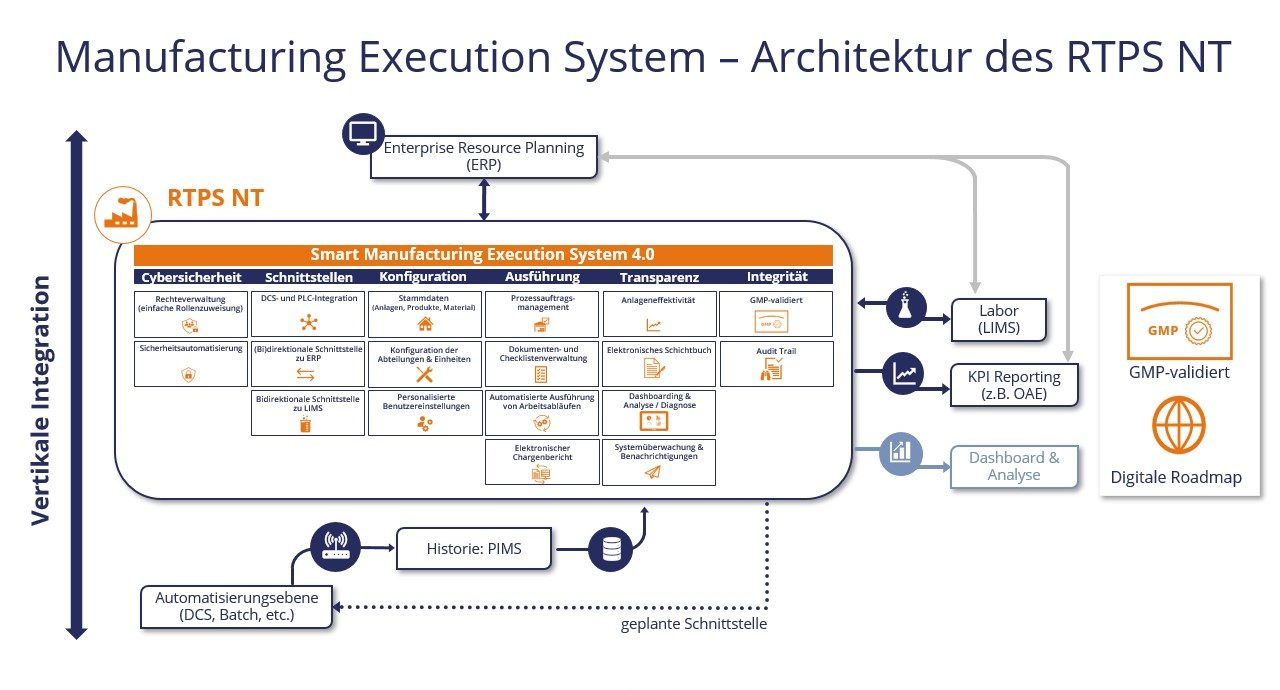 RTPS NT – Herzschlag der Produktion ist die Hauptplattform für die Prozessoptimierung und die Erreichung unserer Operational Excellence Ziele. Mit dem Rollout des GMP-fähigen MES an weitere Standorte können wir zukünftig neue Pharmakunden bedienen.